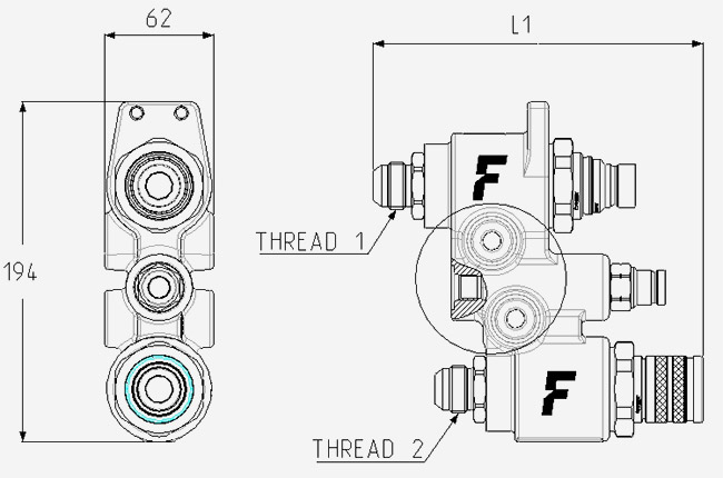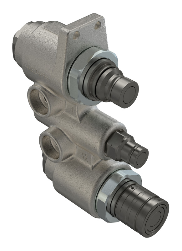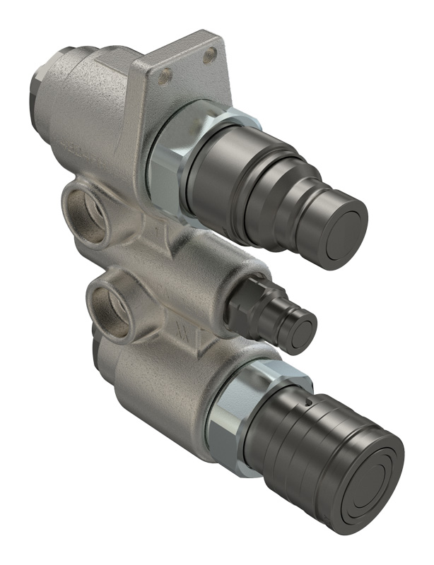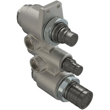 Der ehemals erste konstruierte Guss Block, der es erlaubt Anbaugeräte von Skid Steer Loadern und anderen Baumaschinen zu kuppeln und zu entkuppeln. Die Hydraulik Einsätze, beinhalten alle Technologie Vorteile der FFH Serie. Das Feature der internen Druckentlastung, erlaubt ein beidseitiges Kuppeln unter Restdruck. Die Verwendung von 3/4" Hydraulik Cartridges, garantiert das Potential für High Flow Einsätze, gegenüber dem 1/2" Standard (Beide Baugrößen passen in den gleichen Guss Block).