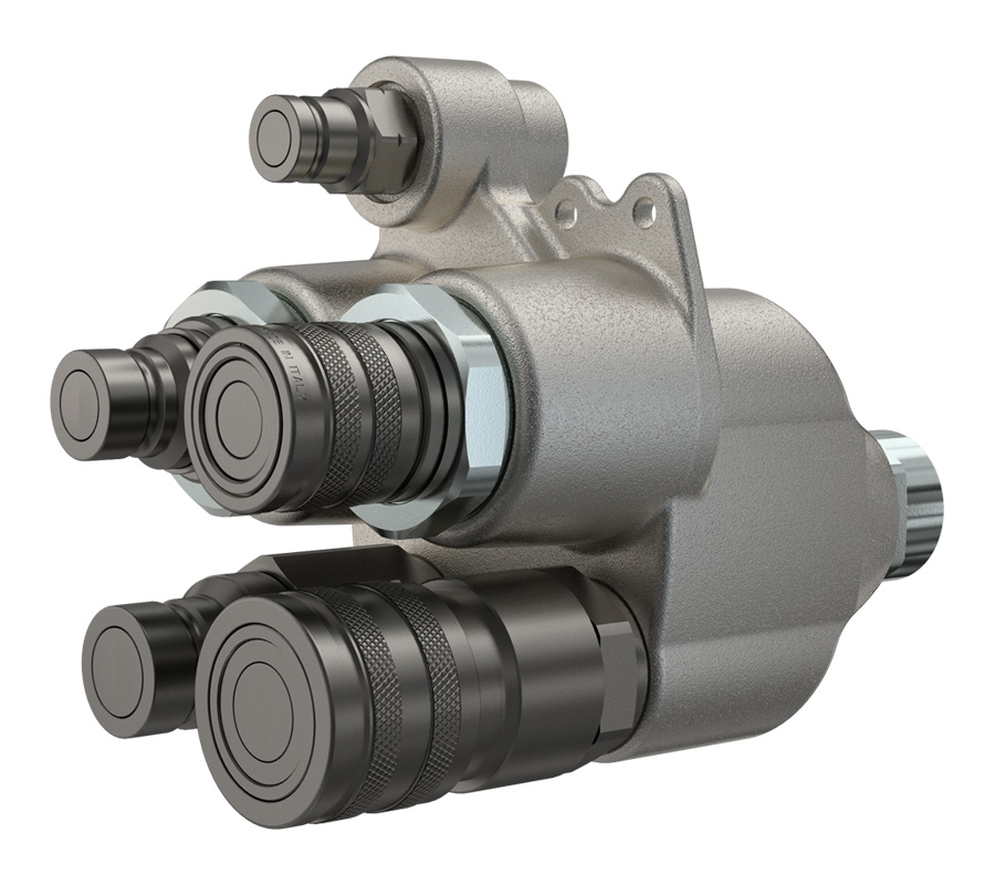 Casting solution with 5 couplings (for standard and high-flow lines) for construction equipment