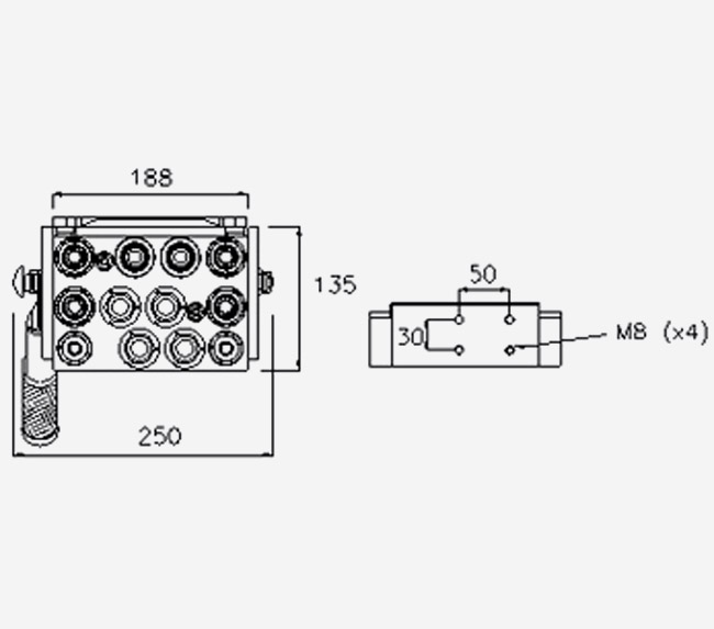 MultiFaster 12 lines. 2 lines size 04 (1/4"), 10 lines size 08 (1/2").