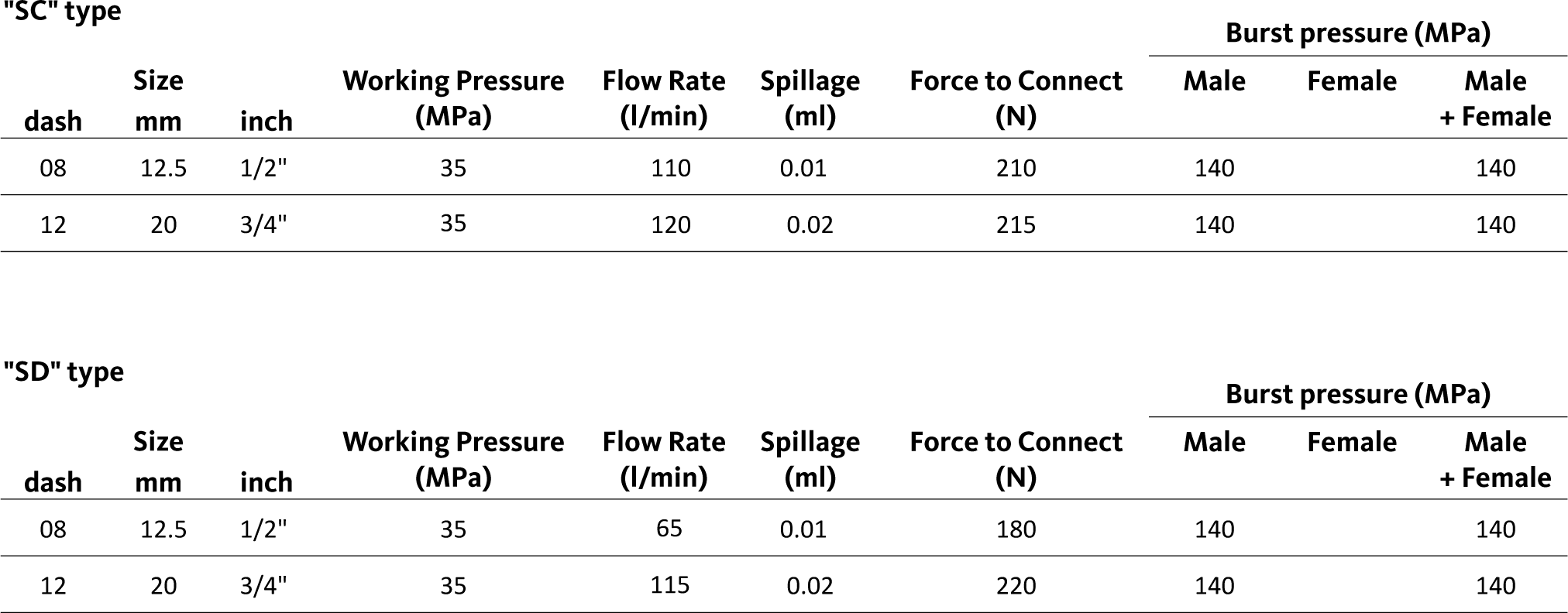 This product allowes quick connection/disconnection of a hydraulic circuit while providing all of the benefits of a traditional swivel preventing premature wear, hose failure and system downtime. Both "SC" and "SD" types are compatible with ISO 16028 standard, with the "SD" type specifically designed to facilitate connection under residual pressure, an enhanced feature beyond the "SC" type capabilities.