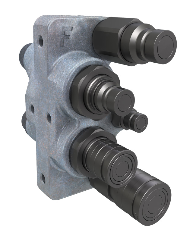 Casting solution with 5 couplings (for standard and high-flow lines) for construction equipment